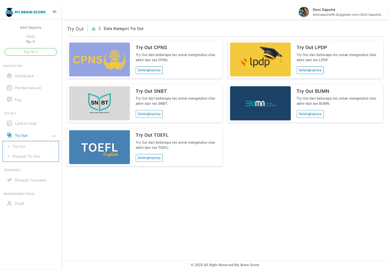 Tak perlu waktu lama untuk mendapatkan hasil Tryout Anda, Hasil langsung keluar ketika pengerjaan selesai. mybrainscore Siap membantu dalam setiap prosesmu, Semangat!!!